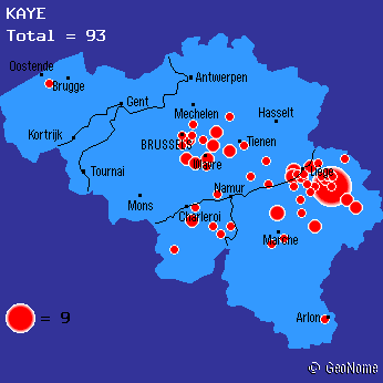 The births in USA and Canada are descendants of Joannis Kaye which emigrated from Belgium.